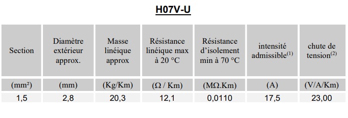 H07V-U : cuivre nu classe 1