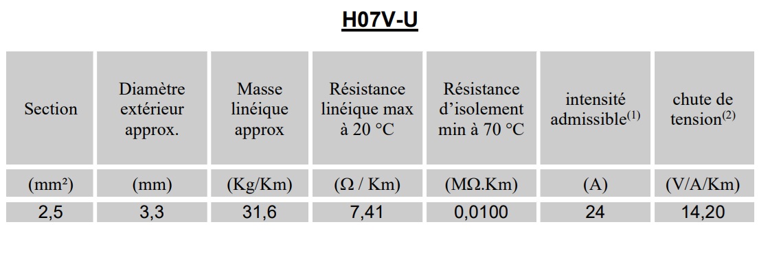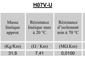 H07V-U : cuivre nu classe 1