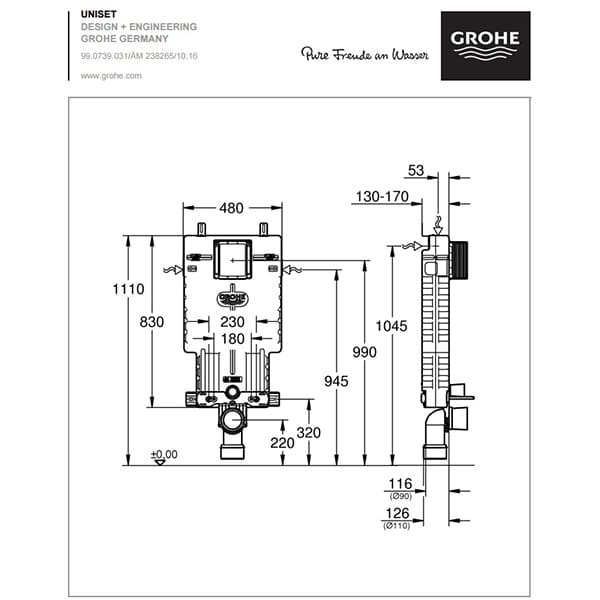 Réservoir de chasse d’eau encastré GROHE avec plaque carré – Art. 38643001