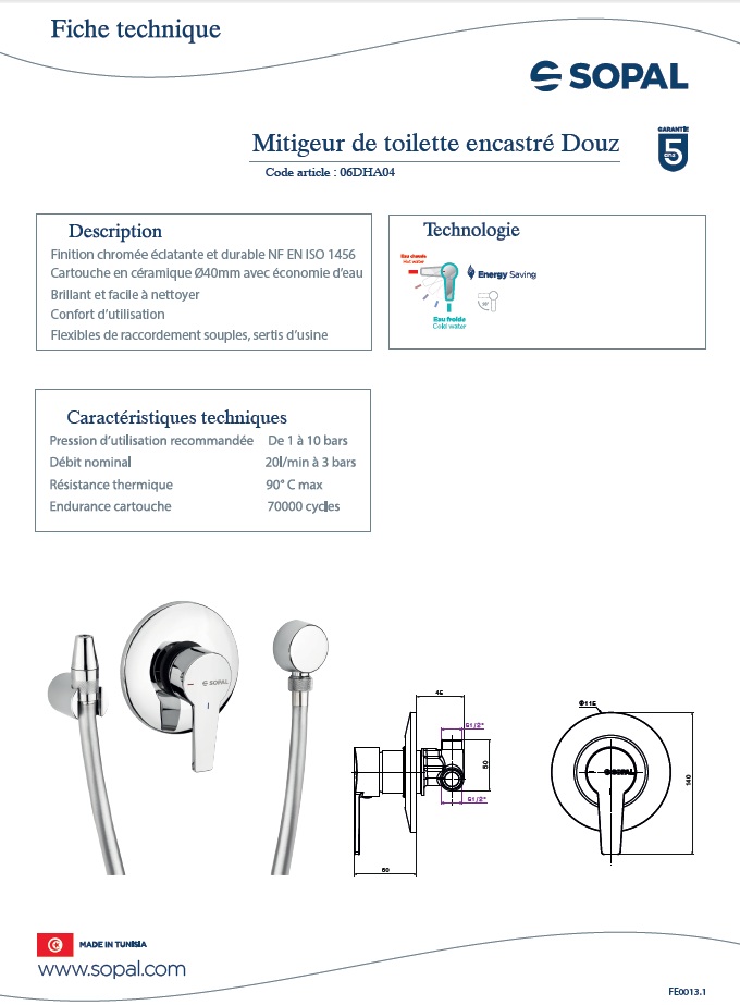 Garantie SOPAL accorde toute l’attention requise dans la fabrication de ses produits et s’engage à garantir sa robinetterie durant cinq ans à partir de la date d’achat.